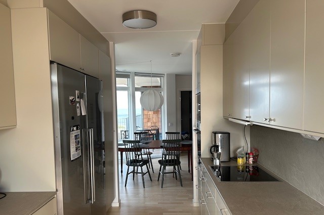 Lägenheten ligger på stranden vid Åhus badbrygga med fin utsikt ut över havet.